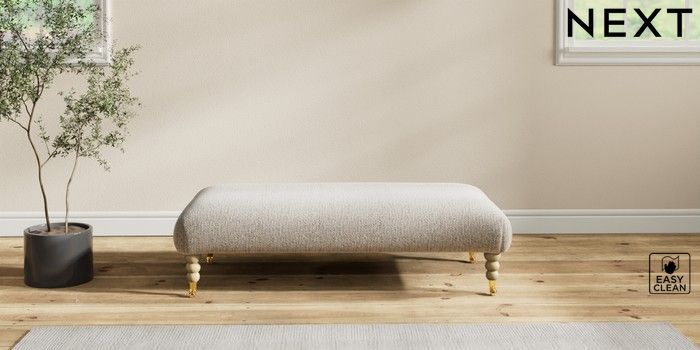7.2.10 Erin Deep Relaxed Sit Extra Large Footstool Chunky Boucle Easy Clean Dove High Classic Turned Brass Castor - Light | Made Click here to use our website with more accessibility support, for example screen readers