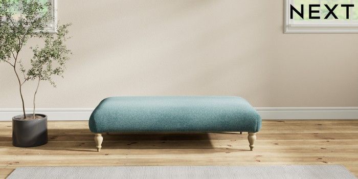 7.2.10 Erin Deep Relaxed Sit Extra Large Footstool Chunky Chenille Mid Teal Green High Classic Turned - Light | Made Click here to use our website with more accessibility support, for example screen readers