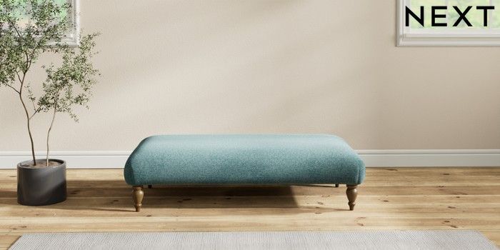7.2.10 Erin Deep Relaxed Sit Extra Large Footstool Chunky Chenille Mid Teal Green High Classic Turned - Mid | Made Click here to use our website with more accessibility support, for example screen readers