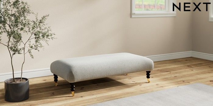 7.2.10 Erin Deep Relaxed Sit Extra Large Footstool Chunky Texture Dove High Classic Turned Brass Castor - Dark | Made Click here to use our website with more accessibility support, for example screen readers
