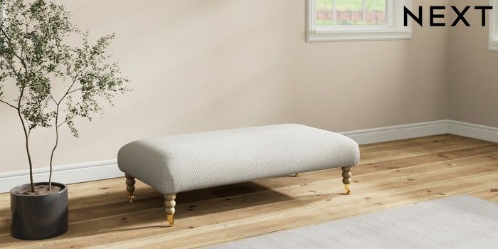7.2.10 Erin Deep Relaxed Sit Extra Large Footstool Chunky Texture Oyster High Classic Turned Brass Castor - Light | Made Click here to use our website with more accessibility support, for example screen readers