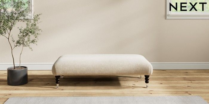 7.2.10 Erin Deep Relaxed Sit Extra Large Footstool Chunky Weave Cream High Classic Turned Chrome Castor - Dark | Made Click here to use our website with more accessibility support, for example screen readers