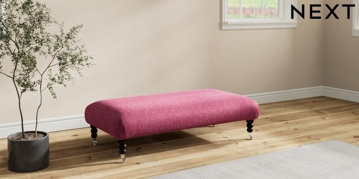7.2.10 Erin Deep Relaxed Sit Extra Large Footstool Cotswold Chenille Dark Raspberry Pink High Classic Turned Chrome Castor - Dark | Made Click here to use our website with more accessibility support, for example screen readers
