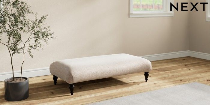 7.2.10 Erin Deep Relaxed Sit Extra Large Footstool Cotswold Chenille Light Natural High Classic Turned - Dark | Made Click here to use our website with more accessibility support, for example screen readers