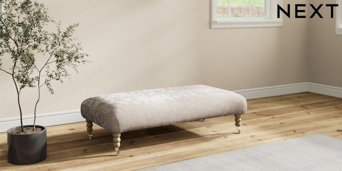 7.2.10 Erin Deep Relaxed Sit Extra Large Footstool Distressed Velour Mid Natural High Classic Turned Chrome Castor - Light | Made Click here to use our website with more accessibility support, for example screen readers