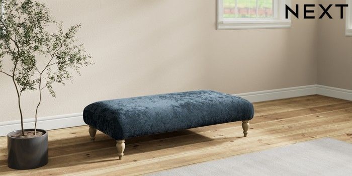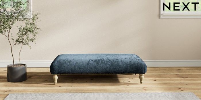 7.2.10 Erin Deep Relaxed Sit Extra Large Footstool Distressed Velour Midnight Blue High Classic Turned - Light | Made Click here to use our website with more accessibility support, for example screen readers