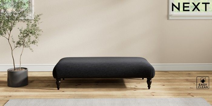 7.2.10 Erin Deep Relaxed Sit Extra Large Footstool Fine Chenille Easy Clean Black High Classic Turned - Dark | Made Click here to use our website with more accessibility support, for example screen readers