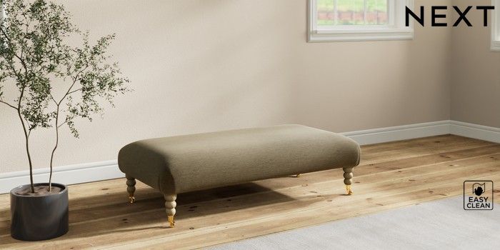 7.2.10 Erin Deep Relaxed Sit Extra Large Footstool Fine Chenille Easy Clean Dark Moss Green High Classic Turned Brass Castor - Light | Made Click here to use our website with more accessibility support, for example screen readers