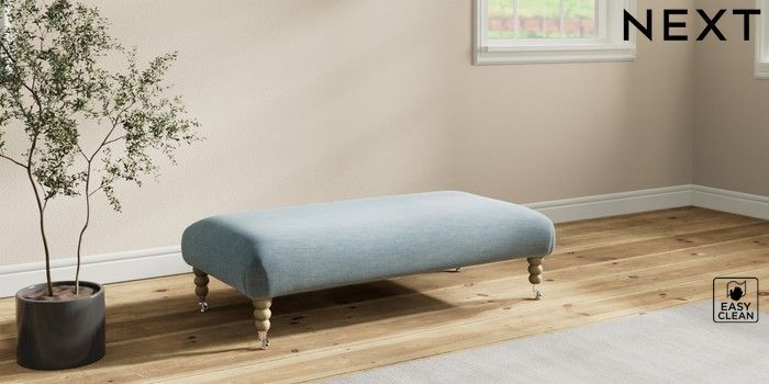 7.2.10 Erin Deep Relaxed Sit Extra Large Footstool Fine Chenille Easy Clean Mid Blue High Classic Turned Chrome Castor - Light | Made Click here to use our website with more accessibility support, for example screen readers