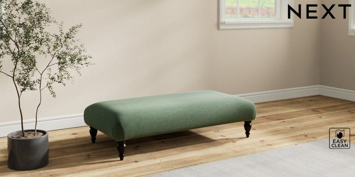 7.2.10 Erin Deep Relaxed Sit Extra Large Footstool Fine Chenille Easy Clean Mid Khaki Green High Classic Turned - Dark | Made Click here to use our website with more accessibility support, for example screen readers