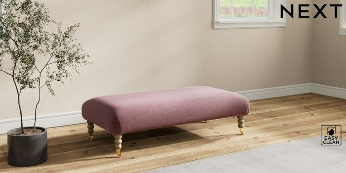 7.2.10 Erin Deep Relaxed Sit Extra Large Footstool Fine Chenille Easy Clean Mid Mulberry Purple High Classic Turned Brass Castor - Light | Made Click here to use our website with more accessibility support, for example screen readers