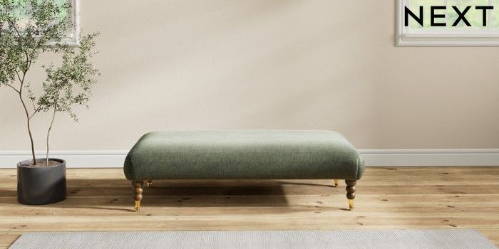7.2.10 Erin Deep Relaxed Sit Extra Large Footstool Luxe Chenille Mid Green High Classic Turned Brass Castor - Mid | Made Click here to use our website with more accessibility support, for example screen readers