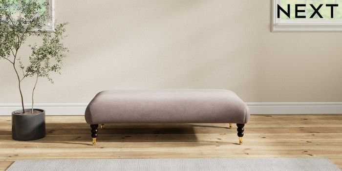 7.2.10 Erin Deep Relaxed Sit Extra Large Footstool Luxe Chenille Mink Brown High Classic Turned Brass Castor - Dark | Made Click here to use our website with more accessibility support, for example screen readers