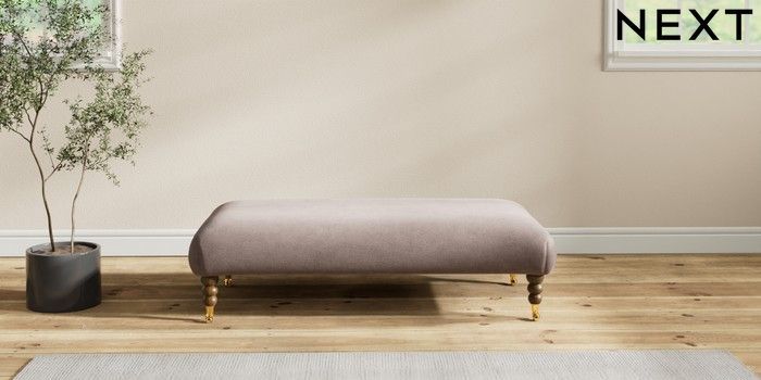 7.2.10 Erin Deep Relaxed Sit Extra Large Footstool Luxe Chenille Mink Brown High Classic Turned Brass Castor - Mid | Made Click here to use our website with more accessibility support, for example screen readers
