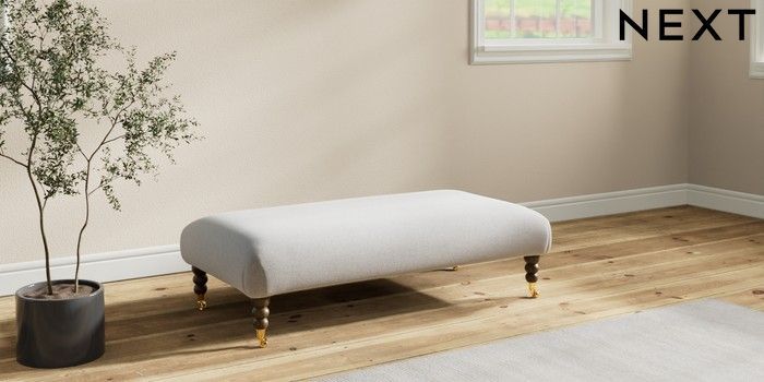 7.2.10 Erin Deep Relaxed Sit Extra Large Footstool Natural Mix Light Grey High Classic Turned Brass Castor - Mid | Made Click here to use our website with more accessibility support, for example screen readers