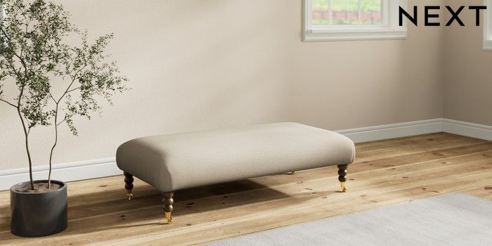 7.2.10 Erin Deep Relaxed Sit Extra Large Footstool Natural Mix Light Natural High Classic Turned Brass Castor - Mid | Made Click here to use our website with more accessibility support, for example screen readers