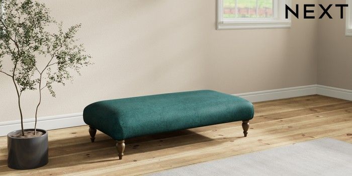 7.2.10 Erin Deep Relaxed Sit Extra Large Footstool Plush Chenille Dark Teal Green High Classic Turned - Mid | Made Click here to use our website with more accessibility support, for example screen readers