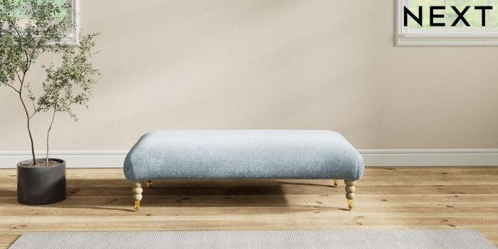 7.2.10 Erin Deep Relaxed Sit Extra Large Footstool Plush Chenille Light Blue High Classic Turned Brass Castor - Light | Made Click here to use our website with more accessibility support, for example screen readers