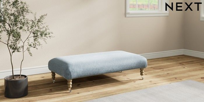 7.2.10 Erin Deep Relaxed Sit Extra Large Footstool Plush Chenille Light Blue High Classic Turned Chrome Castor - Light | Made Click here to use our website with more accessibility support, for example screen readers