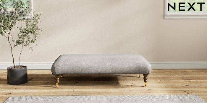 7.2.10 Erin Deep Relaxed Sit Extra Large Footstool Plush Chenille Light Grey High Classic Turned Brass Castor - Mid | Made Click here to use our website with more accessibility support, for example screen readers