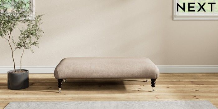 7.2.10 Erin Deep Relaxed Sit Extra Large Footstool Plush Chenille Mid Natural High Classic Turned Chrome Castor - Dark | Made Click here to use our website with more accessibility support, for example screen readers