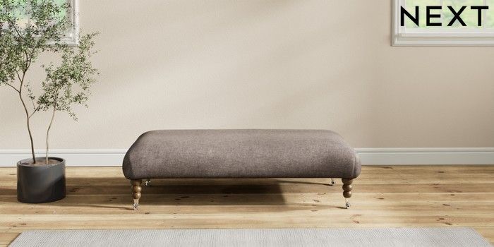 7.2.10 Erin Deep Relaxed Sit Extra Large Footstool Plush Chenille Mink Brown High Classic Turned Chrome Castor - Mid | Made Click here to use our website with more accessibility support, for example screen readers