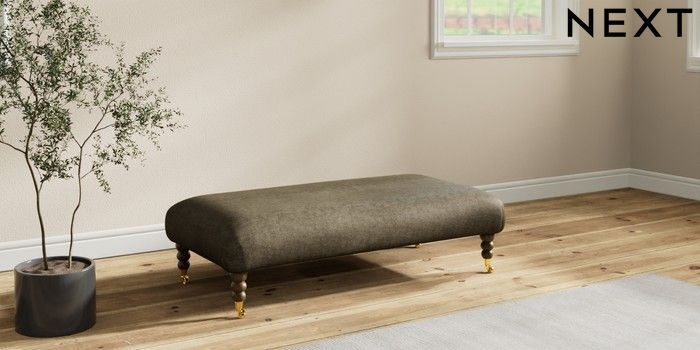 7.2.10 Erin Deep Relaxed Sit Extra Large Footstool Plush Chenille Moss Green High Classic Turned Brass Castor - Mid | Made Click here to use our website with more accessibility support, for example screen readers
