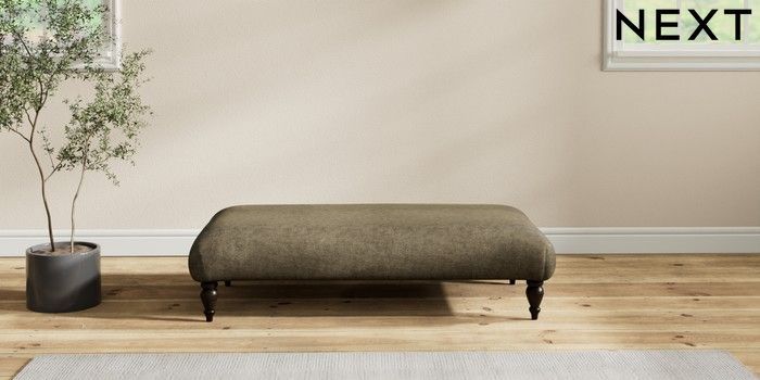 7.2.10 Erin Deep Relaxed Sit Extra Large Footstool Plush Chenille Moss Green High Classic Turned - Dark | Made Click here to use our website with more accessibility support, for example screen readers