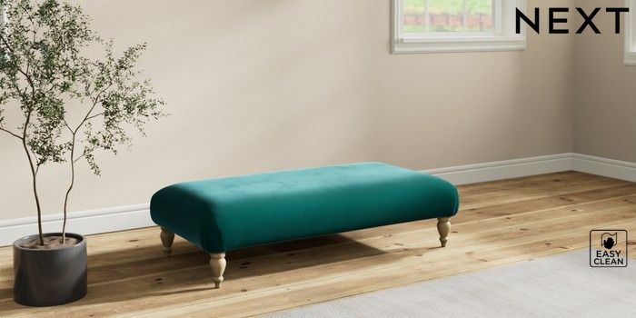 7.2.10 Erin Deep Relaxed Sit Extra Large Footstool Plush Velvet Easy Clean Juniper Green High Classic Turned - Light | Made Click here to use our website with more accessibility support, for example screen readers