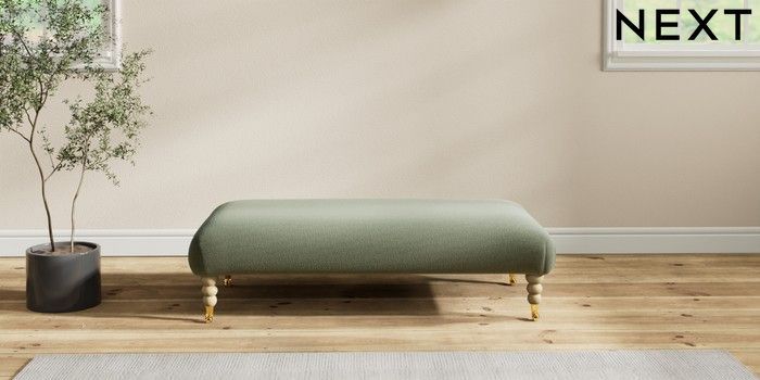 7.2.10 Erin Deep Relaxed Sit Extra Large Footstool Relaxed Linen Look Dark Green High Classic Turned Brass Castor - Light | Made Click here to use our website with more accessibility support, for example screen readers