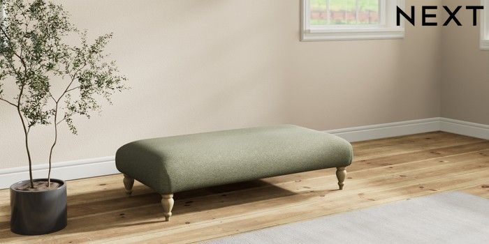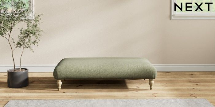 7.2.10 Erin Deep Relaxed Sit Extra Large Footstool Tweedy Chenille Mid Moss Green High Classic Turned - Light | Made Click here to use our website with more accessibility support, for example screen readers