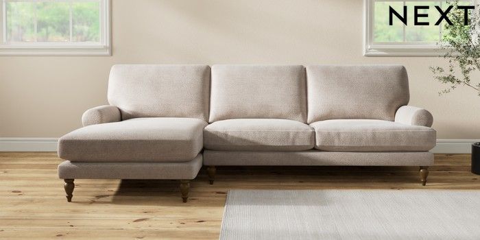 7.2.10 Erin Deep Relaxed Sit Medium Sofa Chaise - Left Hand Boucle Chenille Light Natural High Classic Turned - Mid | Made Click here to use our website with more accessibility support, for example screen readers