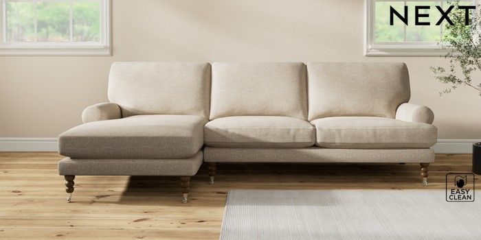7.2.10 Erin Deep Relaxed Sit Medium Sofa Chaise - Left Hand Boucle Weave Easy Clean Dark Natural High Classic Turned Chrome Castor - Mid | Made Click here to use our website with more accessibility support, for example screen readers