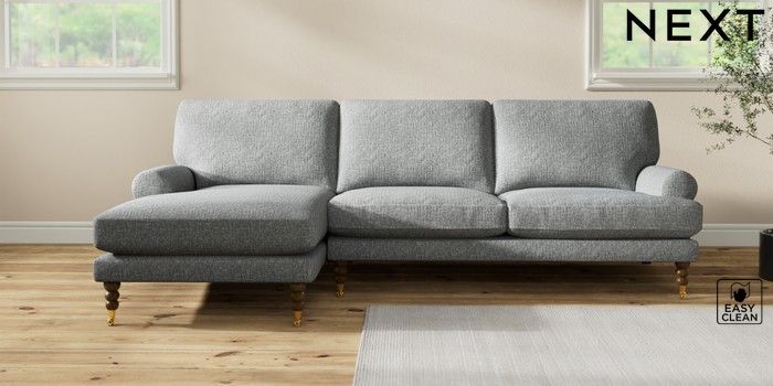 7.2.10 Erin Deep Relaxed Sit Medium Sofa Chaise - Left Hand Chunky Boucle Easy Clean Mid Grey High Classic Turned Brass Castor - Mid | Made Click here to use our website with more accessibility support, for example screen readers
