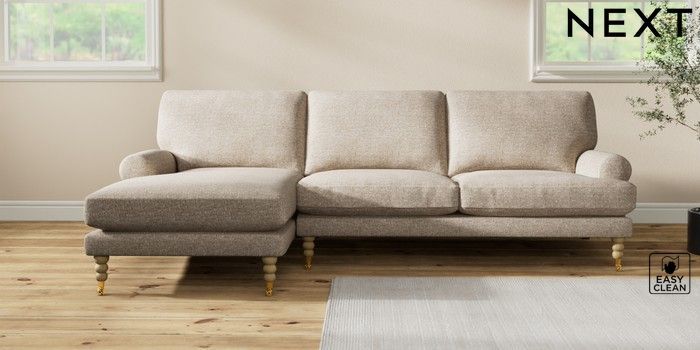 7.2.10 Erin Deep Relaxed Sit Medium Sofa Chaise - Left Hand Chunky Boucle Easy Clean Mid Natural High Classic Turned Brass Castor - Light | Made Click here to use our website with more accessibility support, for example screen readers