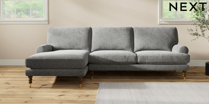 7.2.10 Erin Deep Relaxed Sit Medium Sofa Chaise - Left Hand Chunky Chenille Dark Grey High Classic Turned Brass Castor - Mid | Made Click here to use our website with more accessibility support, for example screen readers