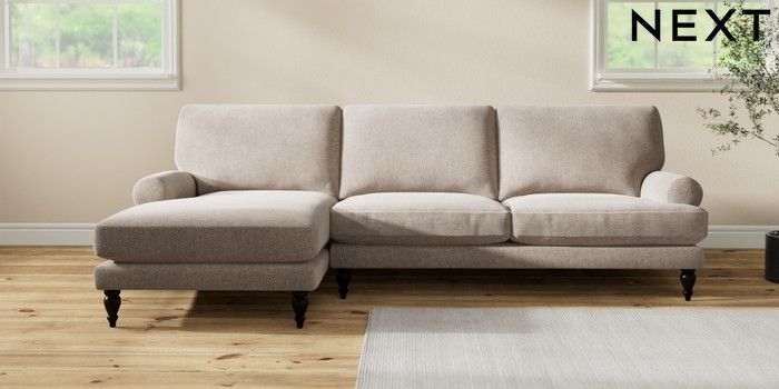 7.2.10 Erin Deep Relaxed Sit Medium Sofa Chaise - Left Hand Chunky Chenille Light Dove High Classic Turned - Dark | Made Click here to use our website with more accessibility support, for example screen readers