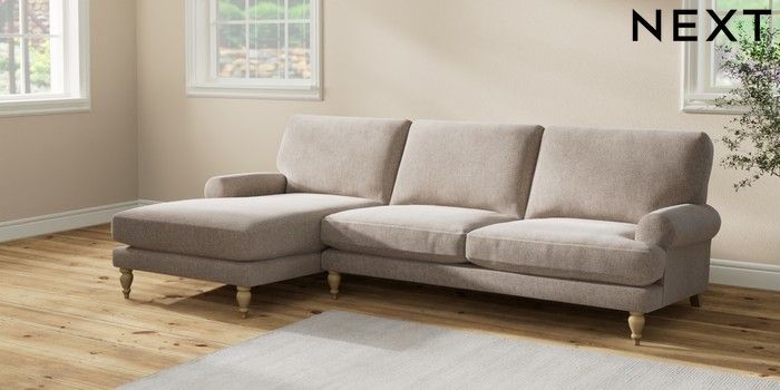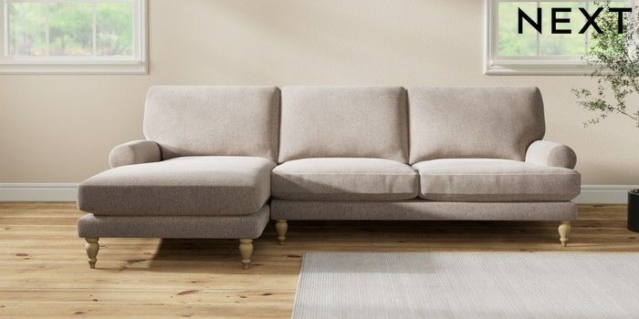 7.2.10 Erin Deep Relaxed Sit Medium Sofa Chaise - Left Hand Chunky Chenille Light Dove High Classic Turned - Light | Made Click here to use our website with more accessibility support, for example screen readers