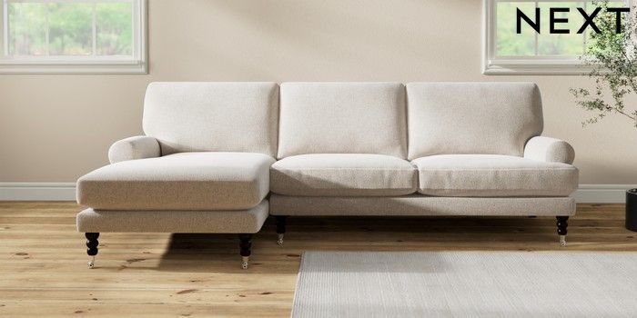 7.2.10 Erin Deep Relaxed Sit Medium Sofa Chaise - Left Hand Chunky Marl Oyster High Classic Turned Chrome Castor - Dark | Made Click here to use our website with more accessibility support, for example screen readers