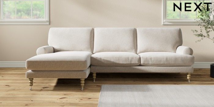 7.2.10 Erin Deep Relaxed Sit Medium Sofa Chaise - Left Hand Chunky Marl Oyster High Classic Turned Chrome Castor - Light | Made Click here to use our website with more accessibility support, for example screen readers