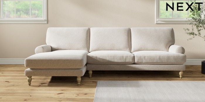7.2.10 Erin Deep Relaxed Sit Medium Sofa Chaise - Left Hand Chunky Marl Oyster High Classic Turned - Light | Made Click here to use our website with more accessibility support, for example screen readers