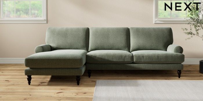 7.2.10 Erin Deep Relaxed Sit Medium Sofa Chaise - Left Hand Chunky Texture Mid Forest Green High Classic Turned - Dark | Made Click here to use our website with more accessibility support, for example screen readers