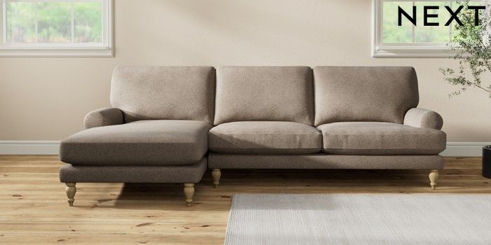 7.2.10 Erin Deep Relaxed Sit Medium Sofa Chaise - Left Hand Chunky Weave Dark Natural High Classic Turned - Light | Made Click here to use our website with more accessibility support, for example screen readers