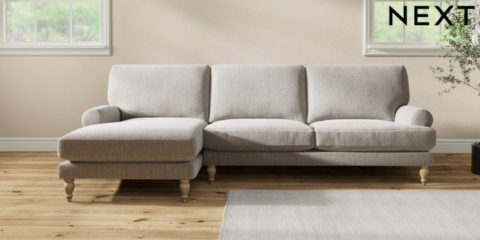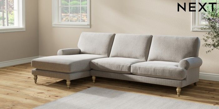 7.2.10 Erin Deep Relaxed Sit Medium Sofa Chaise - Left Hand Chunky Weave Dove Grey High Classic Turned - Light | Made Click here to use our website with more accessibility support, for example screen readers