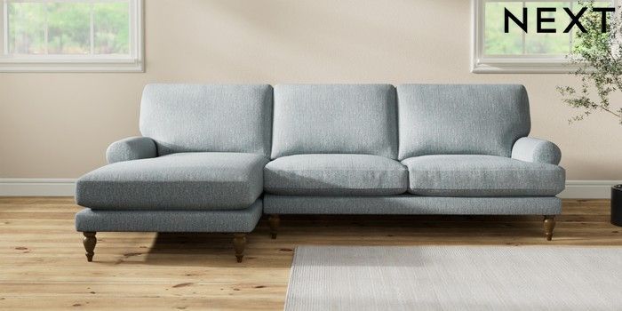 7.2.10 Erin Deep Relaxed Sit Medium Sofa Chaise - Left Hand Chunky Weave Mid Blue High Classic Turned - Mid | Made Click here to use our website with more accessibility support, for example screen readers