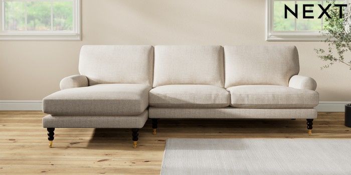 7.2.10 Erin Deep Relaxed Sit Medium Sofa Chaise - Left Hand Chunky Weave Mid Natural High Classic Turned Brass Castor - Dark | Made Click here to use our website with more accessibility support, for example screen readers