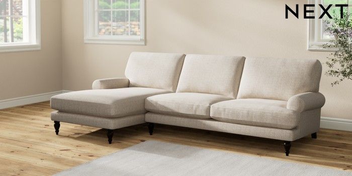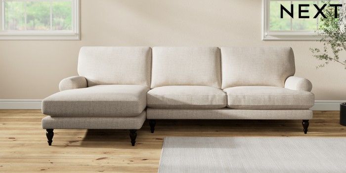 7.2.10 Erin Deep Relaxed Sit Medium Sofa Chaise - Left Hand Chunky Weave Mid Natural High Classic Turned - Dark | Made Click here to use our website with more accessibility support, for example screen readers