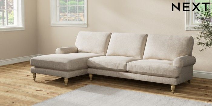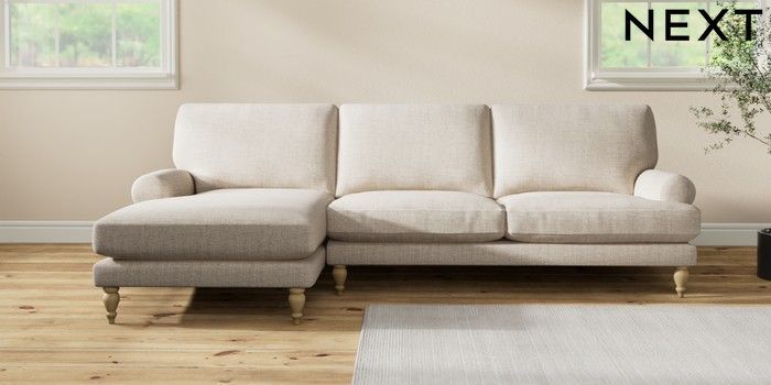 7.2.10 Erin Deep Relaxed Sit Medium Sofa Chaise - Left Hand Chunky Weave Mid Natural High Classic Turned - Light | Made Click here to use our website with more accessibility support, for example screen readers