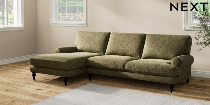 7.2.10 Erin Deep Relaxed Sit Medium Sofa Chaise - Left Hand Cotswold Chenille Dark Green High Classic Turned - Dark | Made Click here to use our website with more accessibility support, for example screen readers