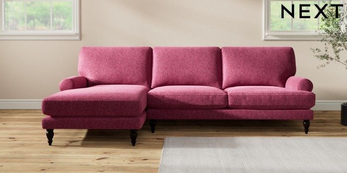 7.2.10 Erin Deep Relaxed Sit Medium Sofa Chaise - Left Hand Cotswold Chenille Dark Raspberry Pink High Classic Turned - Dark | Made Click here to use our website with more accessibility support, for example screen readers